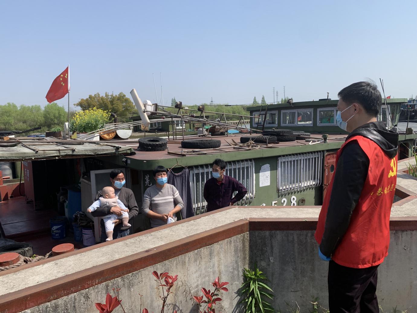 為了確保流動人員安全性和生活需求,一方面,陳煒提出原地管控措施,告知船上人員居船生活,不上岸,并細心安排了志愿者每天在河岸巡邏,了解他們需求并及時幫助解決。另一方面,及時與區(qū)水利所、鎮(zhèn)防控辦溝通聯(lián)系,為船上人員申請核酸檢測點,擔起社會防控責任,為全市防疫工作保駕護航。