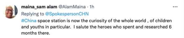 “中國空間站激發(fā)全球特別是孩童和青少年的好奇心。向在太空生活和工作了半年的英雄們致敬!”