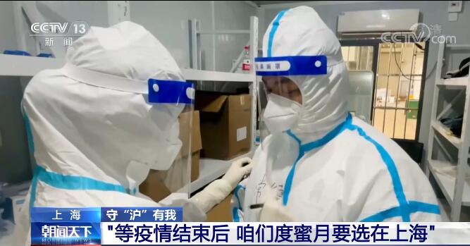央視網(wǎng)消息:我們來認識一對抗疫“準新人”,他們的防護服上,兩個人的名字中間畫的都是小愛心。這對“準新人”來到上海馳援抗疫,婚期也因此推遲了。不過,他們說,不要緊,等疫情結(jié)束了,度蜜月要選在上海。