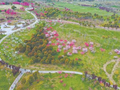 江蘇省淮安市盱眙縣城市桃園休閑公園,經(jīng)過治理,昔日的荒坡垃圾場(chǎng)成了現(xiàn)在的生態(tài)景觀公園。 許昌銀攝(影像中國(guó))