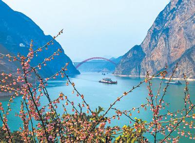 三峽庫區(qū)湖北省宜昌市秭歸縣江段,岸上春花綻放。 鄭 坤攝(影像中國(guó))