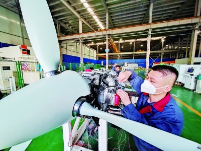 在合肥高新區(qū)南崗科技園的安徽羲禾航空科技有限公司螺旋槳生產(chǎn)中心,工人正在檢查產(chǎn)品。許慶勇攝/光明圖片