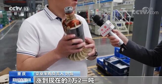 企業(yè)采購(gòu)負(fù)責(zé)人 葉凱:發(fā)電機(jī)由很多銅絲組成,目前的銅價(jià)從原來(lái)的4.5萬(wàn)元、4.6萬(wàn)元一噸漲到現(xiàn)在的7.2萬(wàn)元一噸。