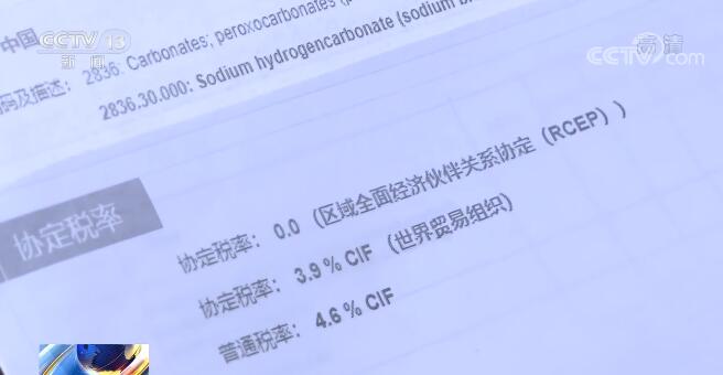在山東青島這家化工企業(yè),外貿(mào)業(yè)務(wù)員劉琨正在與日本客戶對(duì)接今年的新訂單。這張客戶發(fā)來(lái)的稅率表上顯示,RCEP生效后,日本客戶采購(gòu)自己企業(yè)生產(chǎn)的碳酸氫鈉等產(chǎn)品關(guān)稅已從去年的3.9%直接降為零。