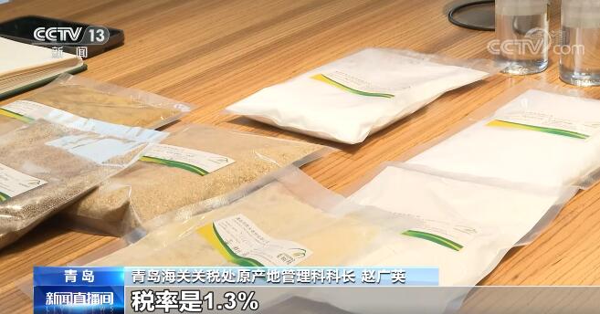 青島海關(guān)關(guān)稅處原產(chǎn)地管理科科長(zhǎng) 趙廣英:比如這款出口到韓國(guó)的賴氨酸鹽酸鹽,根據(jù)RCEP協(xié)定,目前的稅率是6.1%,而根據(jù)我國(guó)和韓國(guó)簽署的自貿(mào)協(xié)定,稅率是1.3%,這種情況我們就不會(huì)用RCEP的規(guī)則。這款黃糊精出口到韓國(guó),RCEP協(xié)定稅率目前是0%,而中韓自貿(mào)協(xié)定的稅率為8%,這款產(chǎn)品我們選用RCEP就比較合適。