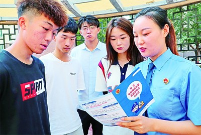 河北省秦皇島市海港區(qū)人民檢察院檢察干警為大學(xué)生普及預(yù)防電信詐騙和防范校園貸的相關(guān)法律知識(shí)。新華社發(fā)