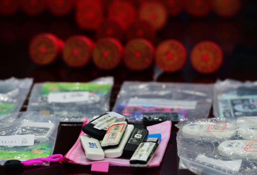 公安、稅務(wù)部門收繳的公司印章等作案工具(資料圖)。新華社記者 魏培全 攝