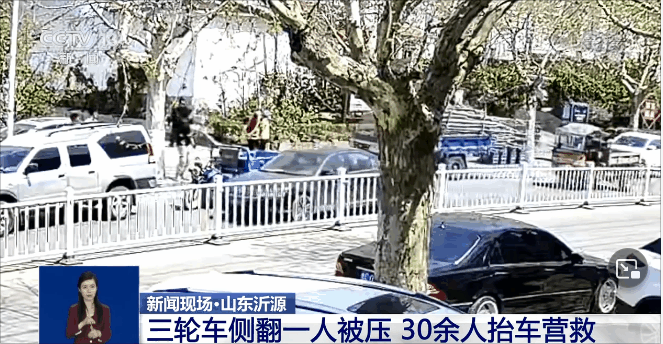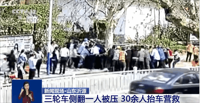 央視網(wǎng)消息:近日,在山東省淄博市沂源縣,一輛機(jī)動(dòng)三輪車側(cè)翻,車上的一名男子被壓,附近的熱心市民合力展開救援。