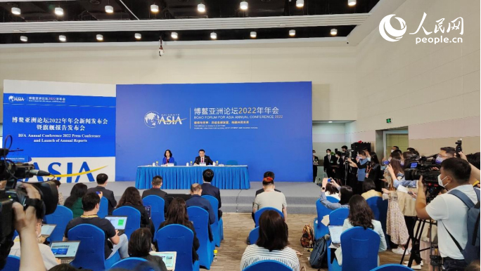博鰲亞洲論壇2022年年會(huì)首場(chǎng)新聞發(fā)布會(huì)現(xiàn)場(chǎng)。人民網(wǎng)記者 許維娜攝