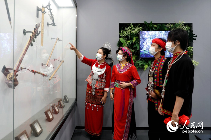 展會(huì)現(xiàn)場(chǎng),展出少數(shù)民族樂器。人民網(wǎng) 符武平攝