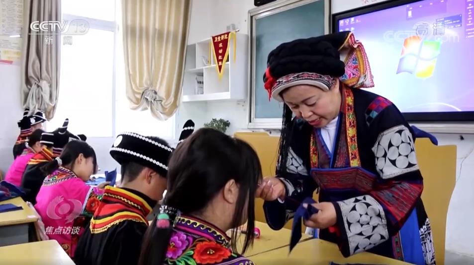 這里是六盤(pán)水市六枝特區(qū)落別鄉(xiāng)民族中學(xué),學(xué)校有500多名學(xué)生,少數(shù)民族學(xué)生占了一大半。她叫韋厚珍,是落別布依族彝族鄉(xiāng)非遺傳承人,她正在教學(xué)生們布依族的傳統(tǒng)手工藝。