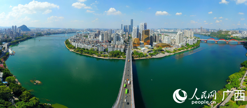 一江綠水環(huán)繞柳州。人民網(wǎng) 付華周攝