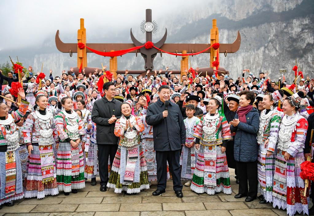立春時節(jié),烏蒙山腹地細雨綿綿,青山如黛。沿著蜿蜒曲折的山路,越過一道道山梁一道道彎,習近平總書記來到深山大江邊的苗家小村,一排整齊有致的白色小樓映入眼簾。