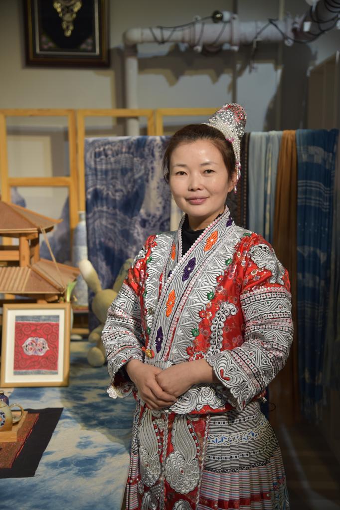 現(xiàn)在,我致力于在傳承苗族傳統(tǒng)特色手工技藝基礎上,謀求多元跨界、融合創(chuàng)新,通過和更多人一起努力,把苗繡發(fā)揚光大,用一針一線繡出更精彩的生活!