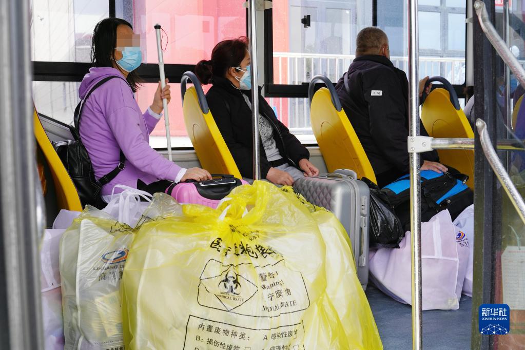 4月30日,康復(fù)出艙人員離開上海臨港方艙醫(yī)院,乘坐轉(zhuǎn)運車輛返回居住地接受健康監(jiān)測。
