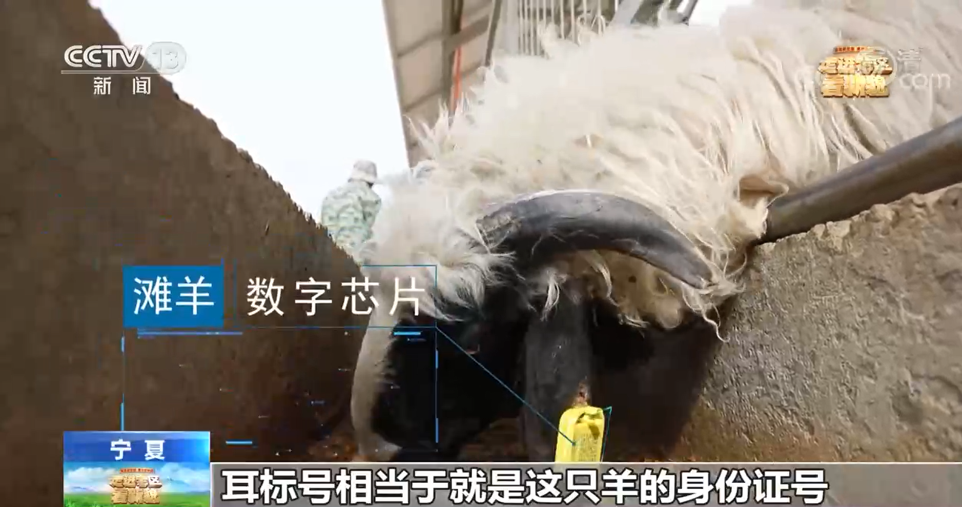 總臺(tái)記者:現(xiàn)在我來到了陜甘寧老區(qū)的鹽池縣。說到鹽池,很多人想到當(dāng)?shù)孛牢兜臑┭。目前,鹽池縣正在推廣灘羊的智慧化養(yǎng)殖。什么是智慧化養(yǎng)殖模式呢?秘密藏在這個(gè)小小的芯片當(dāng)中。