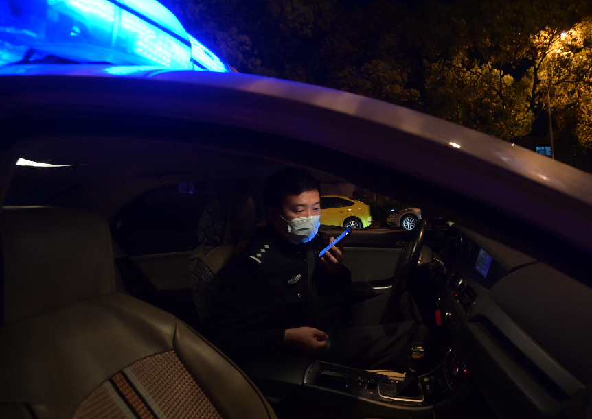 ↑4月10日,在上海市第五人民醫(yī)院門口接處警情時(shí),周譽(yù)又接到臨近轄區(qū)派出所打來的協(xié)查電話。