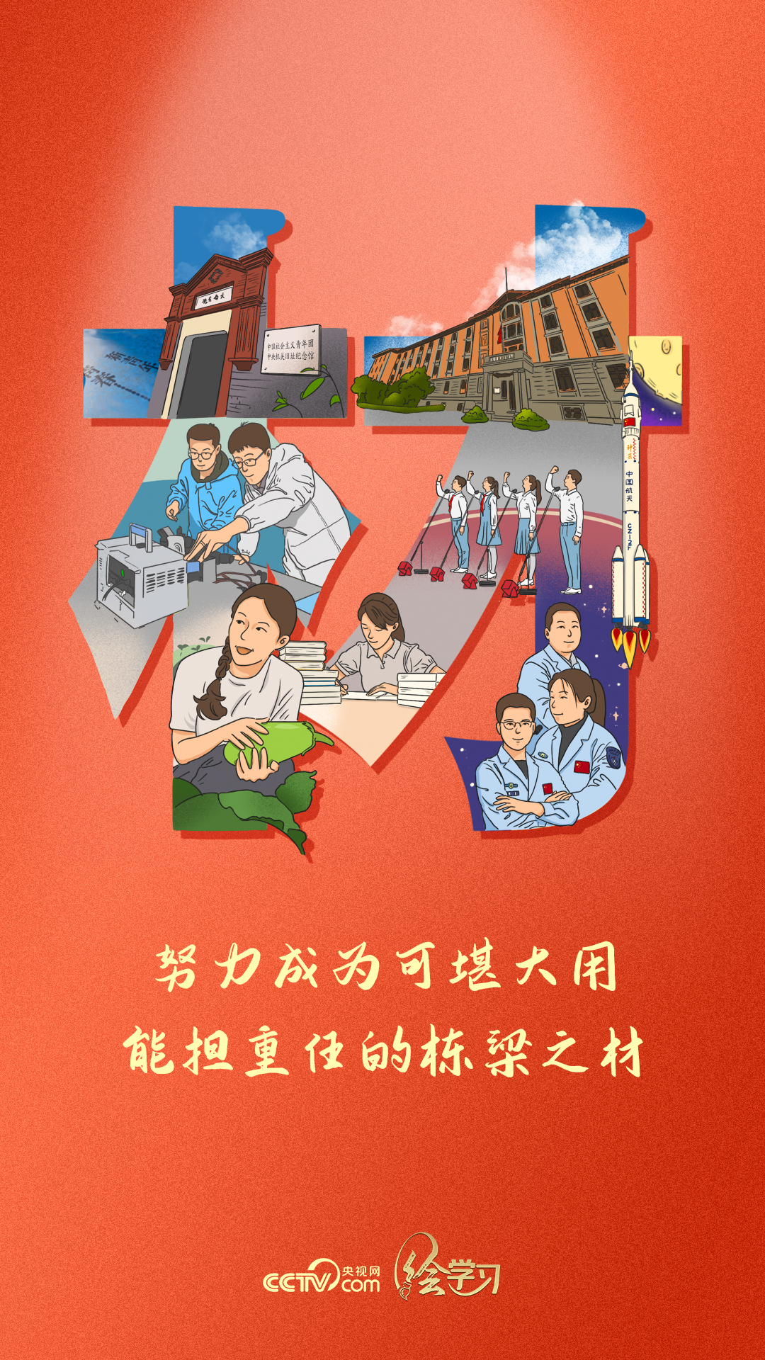 百年來(lái),一批又一批中國(guó)青年為了實(shí)現(xiàn)國(guó)家富強(qiáng)、民族復(fù)興、人民幸福接續(xù)奮斗,為了建設(shè)他們理想中的美好中國(guó)、青春中國(guó),甚至不惜獻(xiàn)上年輕的生命。陳樹(shù)湘、趙一曼、邱少云、黃繼光、雷鋒……他們的青春和故事激勵(lì)后人;錢(qián)學(xué)森、鄧稼先等一大批青年英才突破重重封鎖回到祖國(guó),成為建設(shè)新中國(guó)的棟梁;進(jìn)入新時(shí)代,一批又一批中國(guó)青年與時(shí)代偕行,在實(shí)現(xiàn)中華民族偉大復(fù)興中國(guó)夢(mèng)的生動(dòng)實(shí)踐中放飛青春夢(mèng)想。