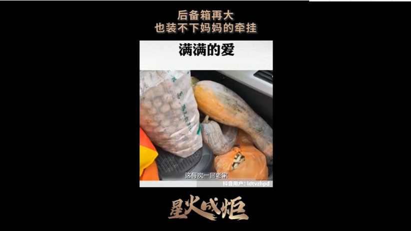 央視網(wǎng)消息:被塞滿的后備箱是承載媽媽最多不舍的地方。再大的后備箱,也放不下她對(duì)我們的牽掛。臨行滿滿裝,母愛盡在不言中。