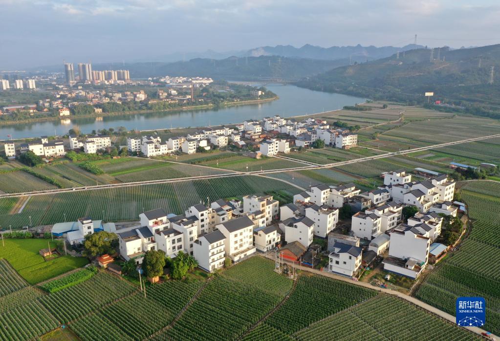 這是廣西百色市田東縣境內(nèi)的鄉(xiāng)村風(fēng)貌(2021年11月4日攝,無人機照片)。新華社記者 陸波岸 攝