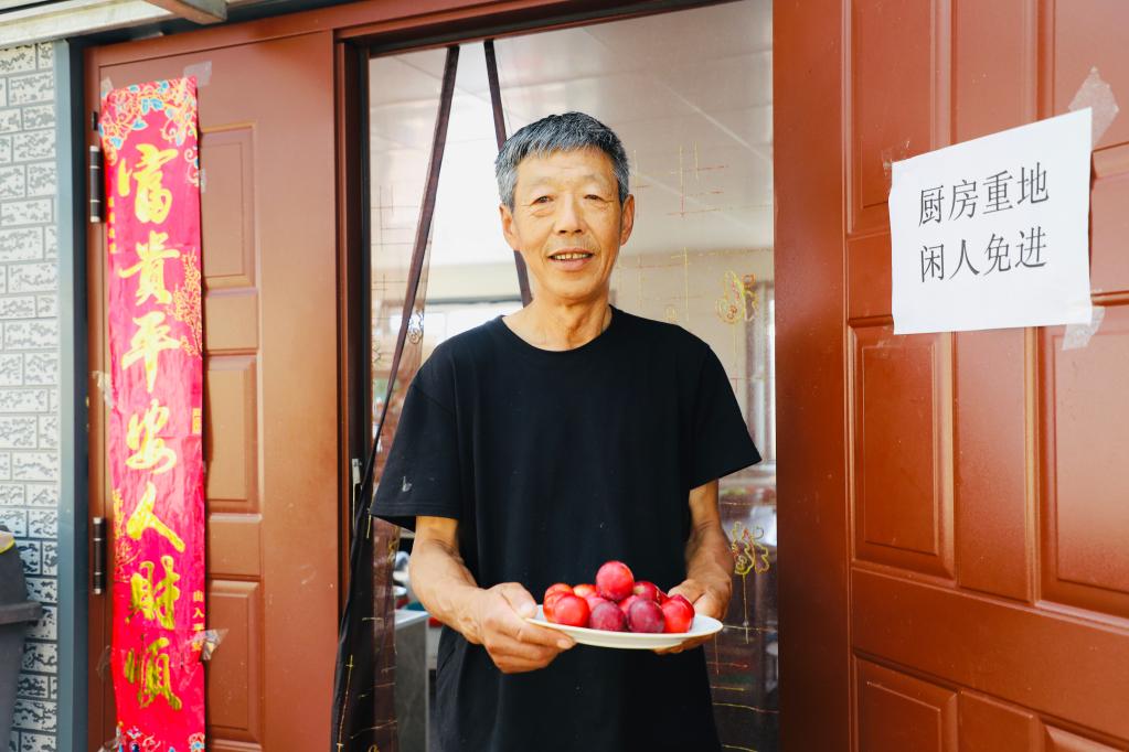 林場退休職工劉養(yǎng)順在農(nóng)家樂招待客人(2021年7月22日攝)。新華社記者孫曉宇 攝