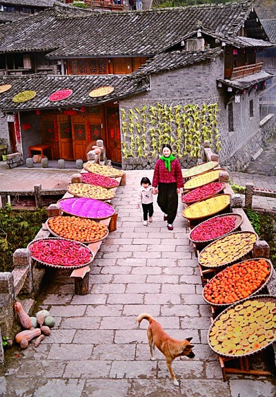 溫州市永嘉縣楠溪江曬秋,回味舊時光。
