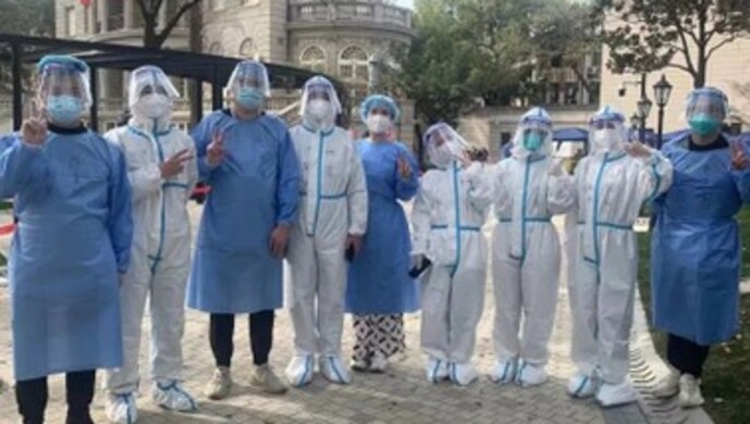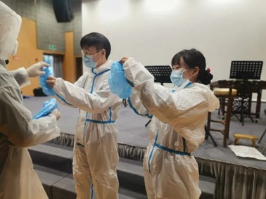在得知劇院院址的核酸檢測點需要志愿者的消息后,劇院群里被“可以馬上到崗!”的消息刷屏。志愿者團隊在不到一天內(nèi)集結(jié)完成,他們中有臨近退休的老職工,也有樂于奉獻的青年演員,大家換上了“大白”“小藍”服裝,協(xié)助工作人員做好物料準備、檢測掃碼工作。青年演員還發(fā)揮特長,用滬語播報檢測流程,為居民耐心解答核酸登記問題。錢瑩表示,“戰(zhàn)‘疫’是一面鏡子,照見了尋常日子里不易看到的忠誠和擔(dān)當(dāng)。在防疫一線學(xué)習(xí)到更多知識、收獲更多經(jīng)驗、感受更多冷暖,更加體會到防疫一線工作人員們的艱辛和不易。堅持就是勝利,讓我們肩并肩在愛中同行,重逢于抗疫之戰(zhàn)取得勝利的上海!”