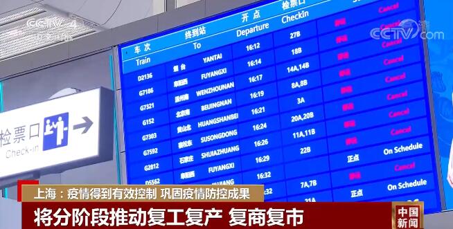 昨天(5月16日),上海虹橋站增開多趟旅客列車,全天出發(fā)共12趟,離滬旅客總數(shù)超過6000人,目的地增加了昆明、南昌、廈門等城市。上海市計(jì)劃5月22日起,地面公交和軌道交通有條件逐步恢復(fù)運(yùn)營。