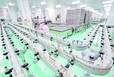 河北石家莊一家制藥有限公司的工人在醫(yī)藥生產(chǎn)車間工作。新華社發(fā)