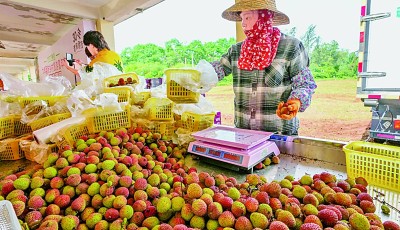 澄邁縣大豐荔枝分揀基地,果農(nóng)在對荔枝進行分揀包裝。陳元才攝/光明圖片