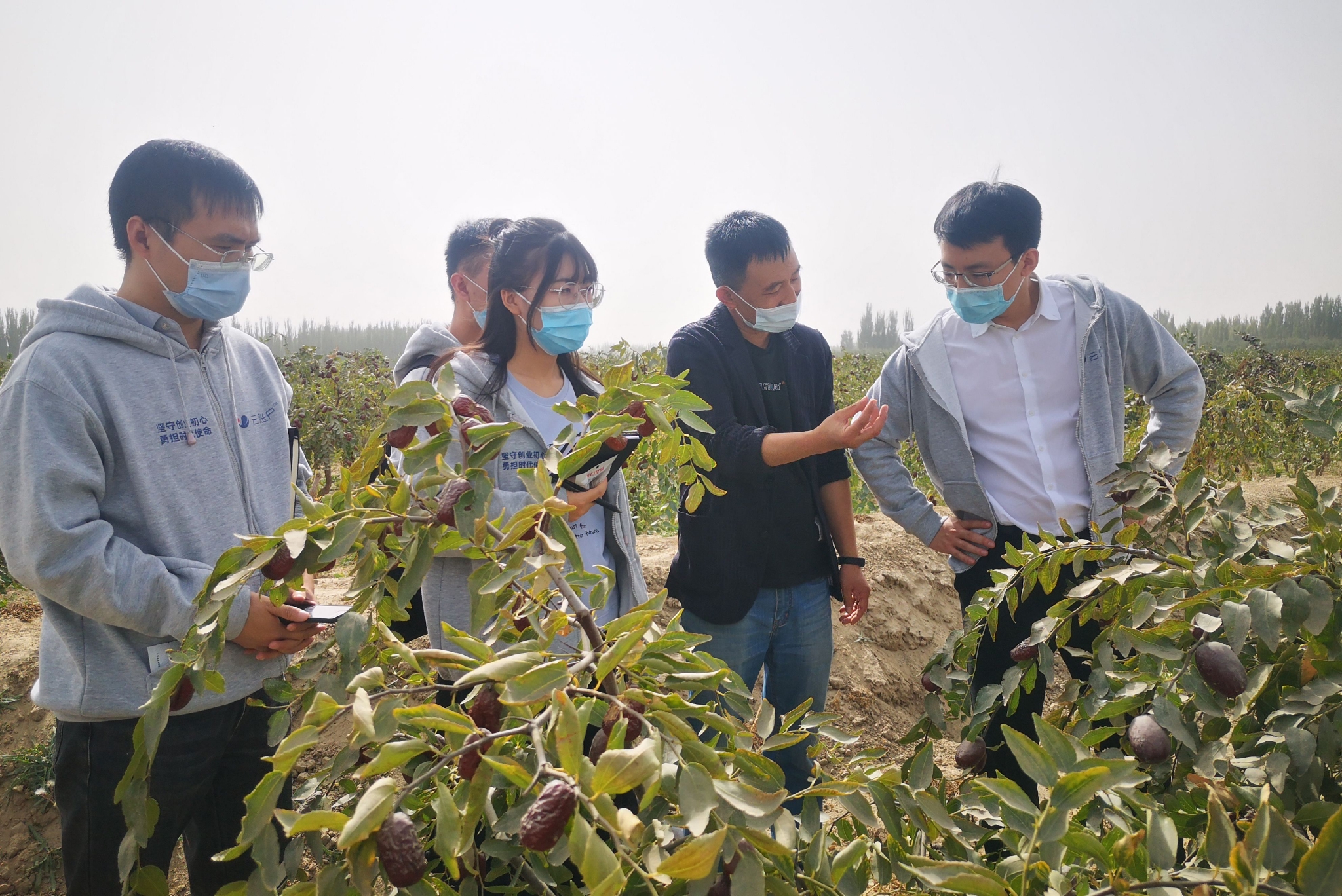2020年10月,楊暉帶隊在鄉(xiāng)村調研紅棗種植產業(yè)(右一為楊暉)。受訪者供圖