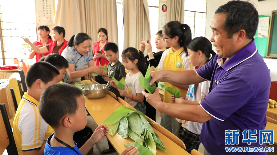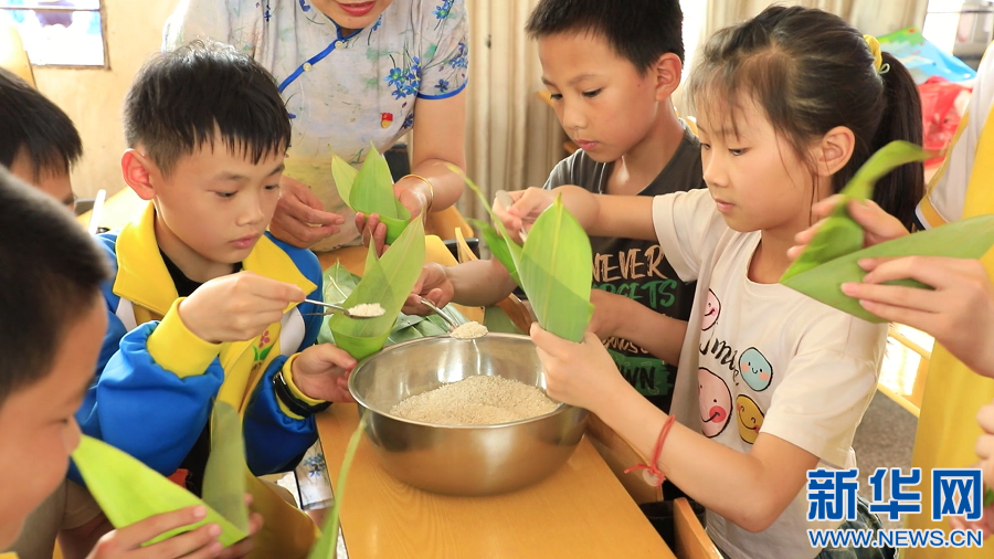 ▲在江西省大余縣南安小學(xué),老師和留守兒童一起包粽子,大家在歡聲笑語(yǔ)中,度過(guò)一個(gè)溫暖的“六一”兒童節(jié)。新華網(wǎng)發(fā) 嚴(yán)杰 攝