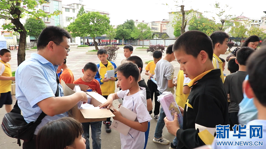 ▲在江西省大余縣南安小學(xué),當(dāng)?shù)赜嘘P(guān)部門為留守兒童送來(lái)書本、文具等學(xué)習(xí)用品。新華網(wǎng)發(fā) 嚴(yán)杰 攝