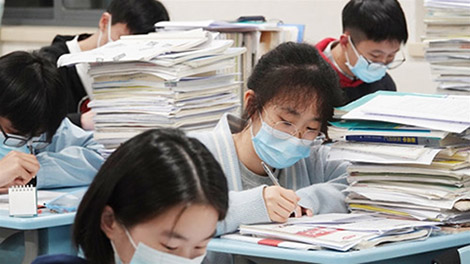 日復(fù)一日,每張課桌上都堆起了“書山”。