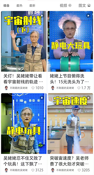 視頻中的老人叫吳於人,網(wǎng)友稱她“吳姥姥”,72歲,坐擁百萬(wàn)粉絲!皡抢牙选蓖诵萸笆峭瑵(jì)大學(xué)物理學(xué)教授,退休后成了愛“玩”物理的老小孩,在她手里,雞蛋、花生、硬幣等都能成為實(shí)驗(yàn)用品。