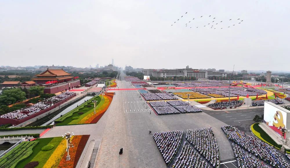 2021年7月1日上午,慶祝中國共產(chǎn)黨成立100周年大會在北京天安門廣場隆重舉行。新華社記者 李賀 攝