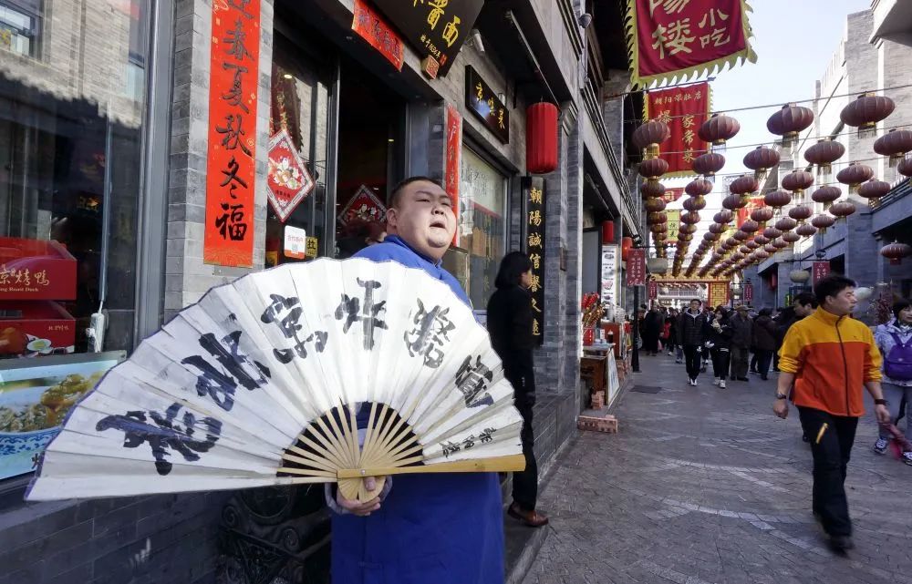 北京前門大街一家老字號的工作人員在門口迎客(2017年2月5日攝)。新華社記者 李欣 攝