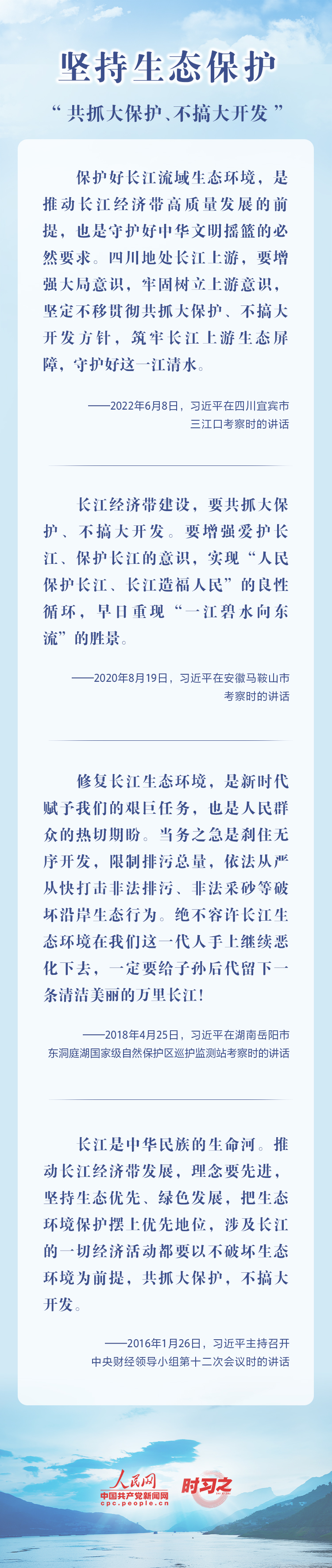 四川宜賓三江口,是長江、金沙江、岷江交匯處,長江至此始稱“長江”。2022年6月8日下午,習(xí)近平總書記來到三江口,眺望三江交匯處,聽取當(dāng)?shù)赝七M(jìn)長江流域生態(tài)修復(fù)保護(hù)、實(shí)施長江水域禁捕退捕等情況介紹。長江的規(guī)劃與發(fā)展,始終牽動(dòng)著總書記的心。