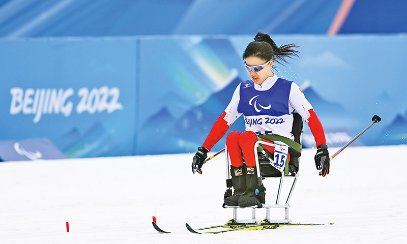 在北京冬殘奧會上,中國代表團(tuán)運動員全項參賽、勇于超越,自強(qiáng)不息、團(tuán)結(jié)拼搏,奏響了堅韌不屈、樂觀進(jìn)取的生命凱歌,不僅體現(xiàn)出殘疾人的體育精神與實力,更體現(xiàn)出中國人權(quán)保障與國家發(fā)展的成績。圖為2022年3月9日,中國代表團(tuán)運動員楊洪瓊在殘奧越野滑雪女子短距離(坐姿組)比賽中。 新華社記者 楊冠宇/攝