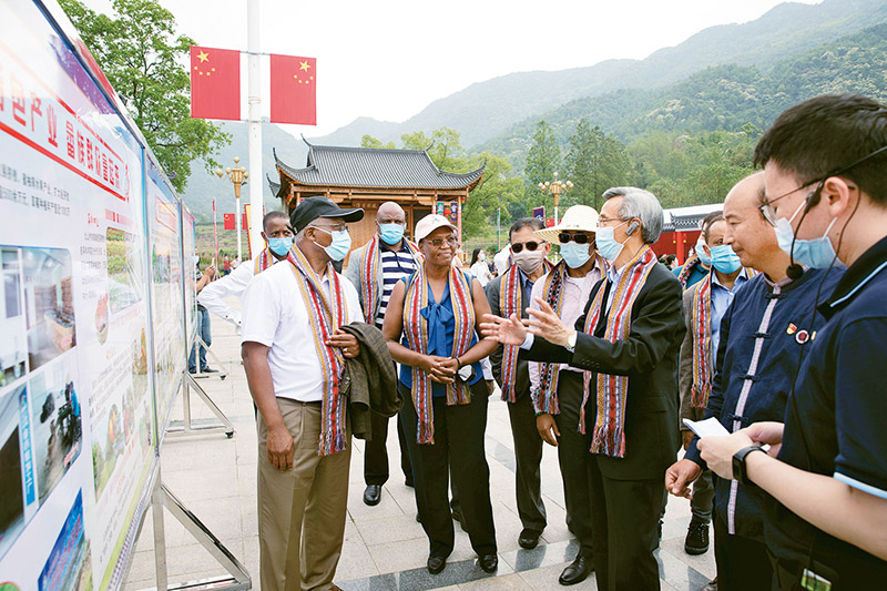 2021年5月7日,在福建寧德參加“中國減貧發(fā)展與人權(quán)事業(yè)研討會”的13個國家駐華使節(jié)走訪七都鎮(zhèn)北山村。 中新社發(fā) 池榕/攝