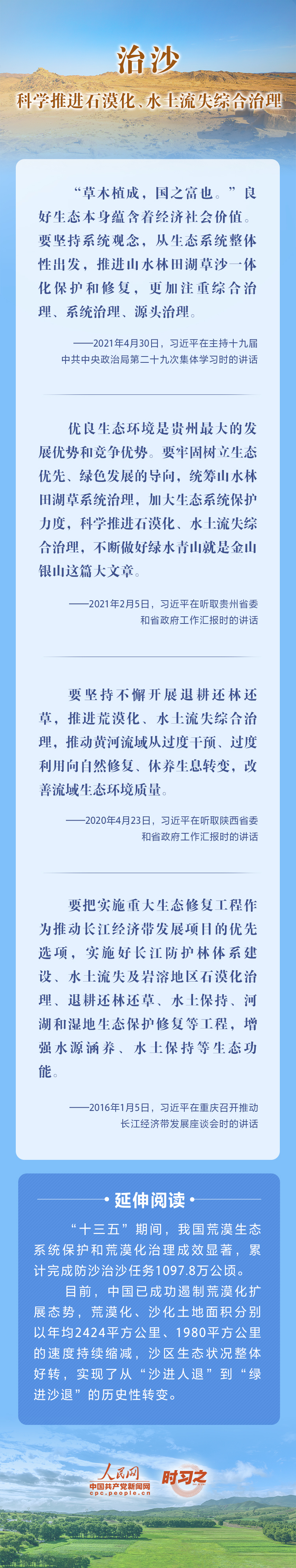 2022年6月17日是第二十八個世界防治荒漠化與干旱日;哪侨蛎媾R的重大生態(tài)問題,黨的十八大以來,在習近平生態(tài)文明思想的指引下,我國荒漠化防治工作開辟了新境界、邁上了新臺階。讓我們一起從總書記的重要論述里學習領悟中國踐行綠色發(fā)展理念,堅定走好荒漠化防治之路的決心。