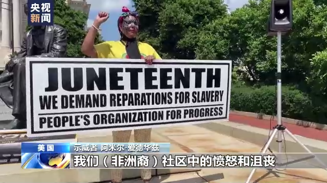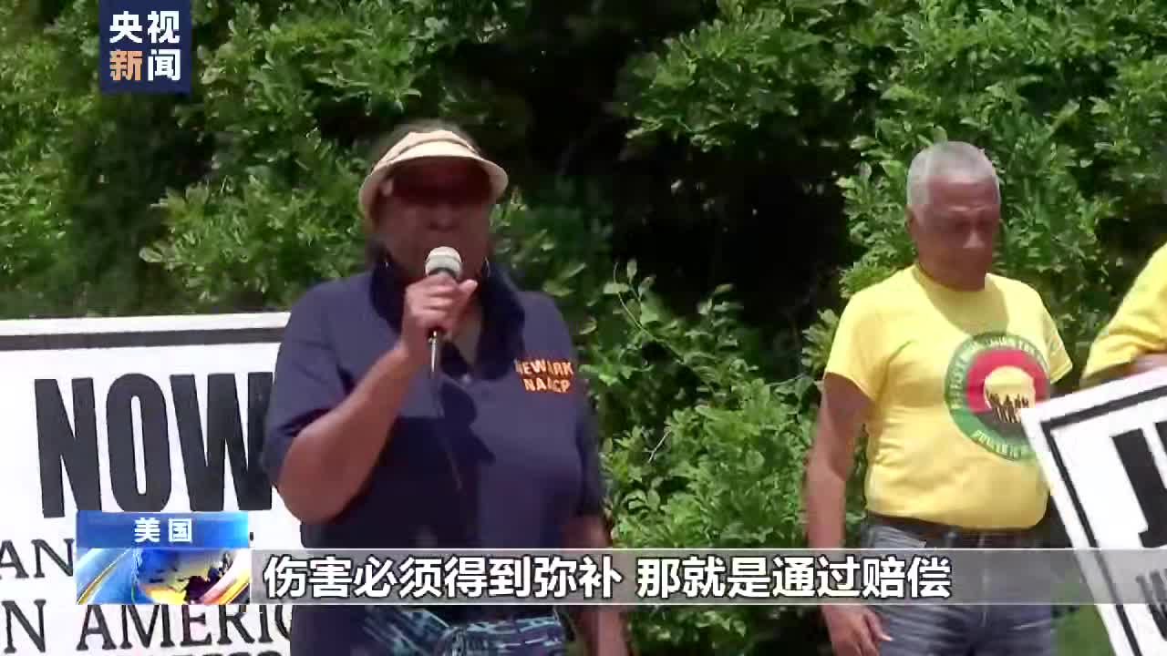 去年6月,美國正式將6月19日定為聯(lián)邦公共假期。每年這一天前后,全美多地都會舉行活動(dòng)呼吁種族平等。當(dāng)?shù)貢r(shí)間17日,在新澤西州紐瓦克舉行的示威活動(dòng)要求對被“奴隸制”傷害的非洲裔美國人作出賠償。