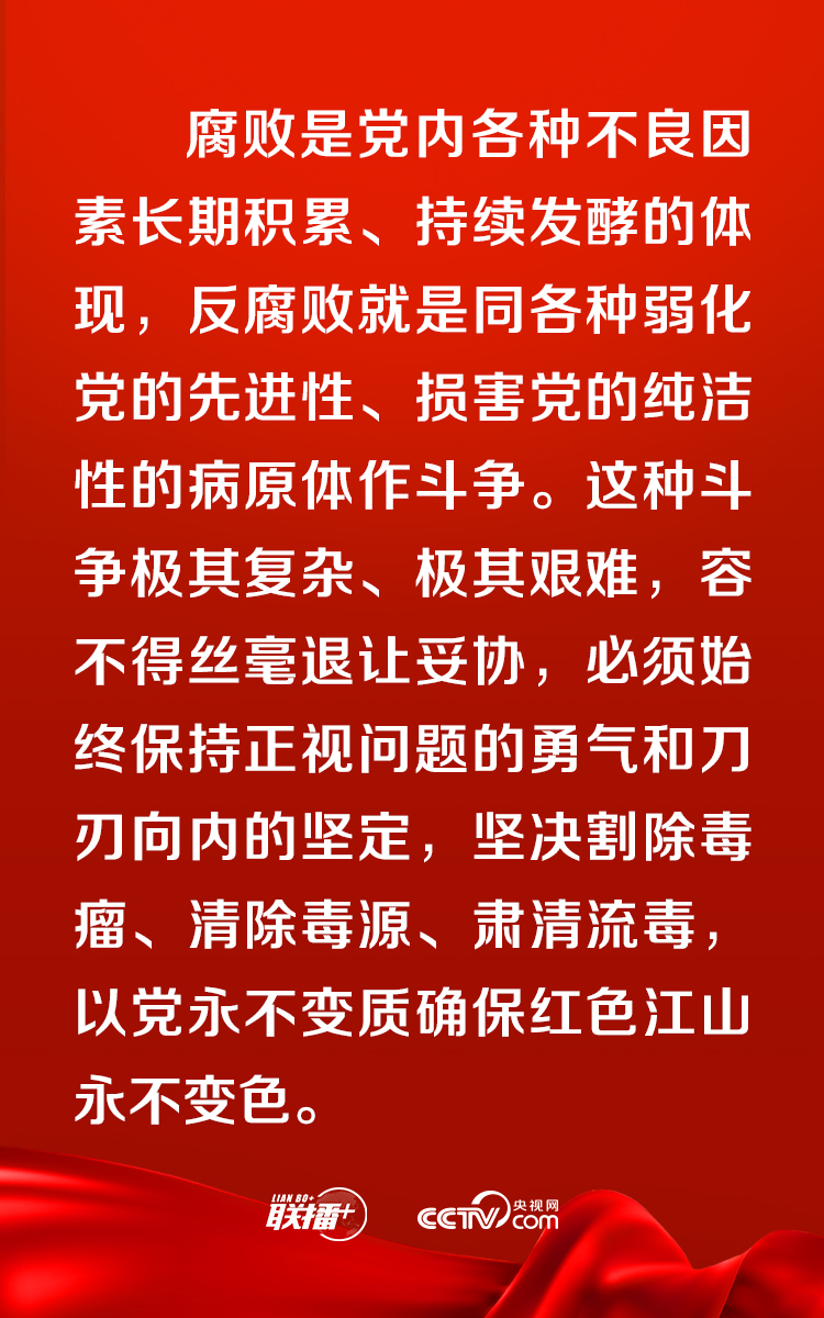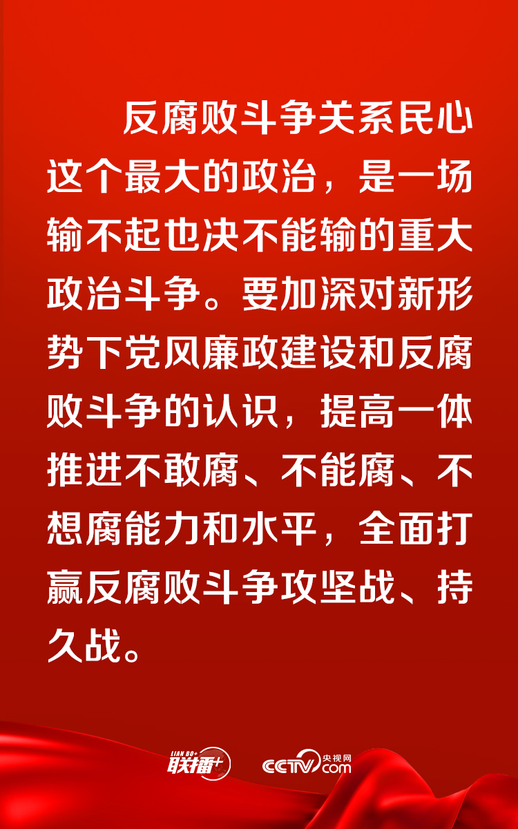 ▲要加強(qiáng)黨中央對(duì)反腐敗工作的集中統(tǒng)一領(lǐng)導(dǎo),發(fā)揮黨的政治優(yōu)勢(shì)、組織優(yōu)勢(shì)、制度優(yōu)勢(shì),壓實(shí)各級(jí)黨委(黨組)全面從嚴(yán)治黨主體責(zé)任特別是“一把手”第一責(zé)任人責(zé)任,貫通落實(shí)相關(guān)職能部門(mén)監(jiān)管職責(zé),健全各負(fù)其責(zé)、統(tǒng)一協(xié)調(diào)的管黨治黨責(zé)任格局。