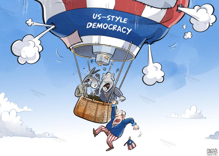 美國兩黨為私利奔忙,“美式民主機器”的內(nèi)耗弊端更加凸顯。(來源:中國日報 宋晨 英文《中國日報》2022年6月21日8版)