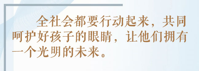 呵護(hù)好孩子們的眼睛,一直牽動(dòng)著習(xí)近平總書記的心。他多次作出重要指示,對(duì)保護(hù)青少年視力健康提出要求。