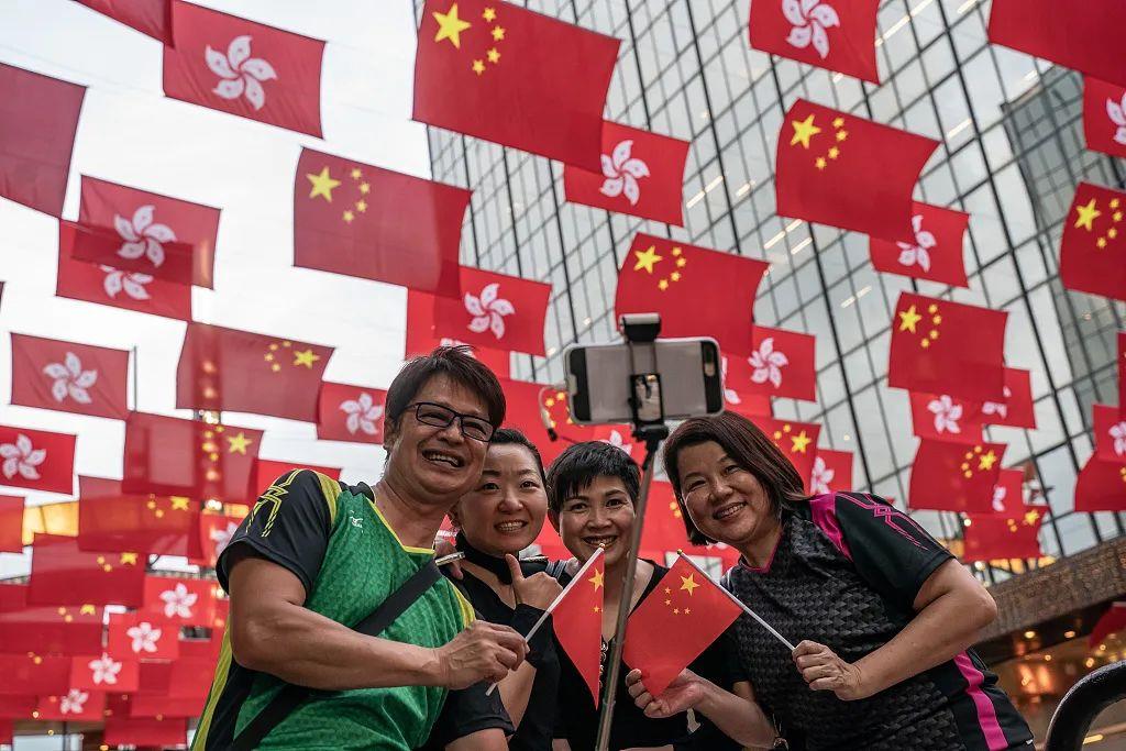 △2021年7月1日,香港市民在街頭揮舞五星紅旗,慶祝中國(guó)共產(chǎn)黨成立100周年及香港回歸祖國(guó)24周年。