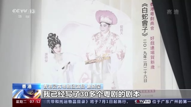 香港靈霄粵劇團(tuán)演員 謝曉瑩:我覺得粵劇的發(fā)展除了我們自己的努力,還需要去取經(jīng)、去學(xué)習(xí)。10年的時間里,我去了北京、上海、浙江、江蘇,還有很多內(nèi)地的城市,去學(xué)習(xí)戲曲的表演。整個祖國山河景點對我來說,都是我創(chuàng)作的靈感。我已經(jīng)寫了30多個粵劇的劇本,我覺得很幸福。
