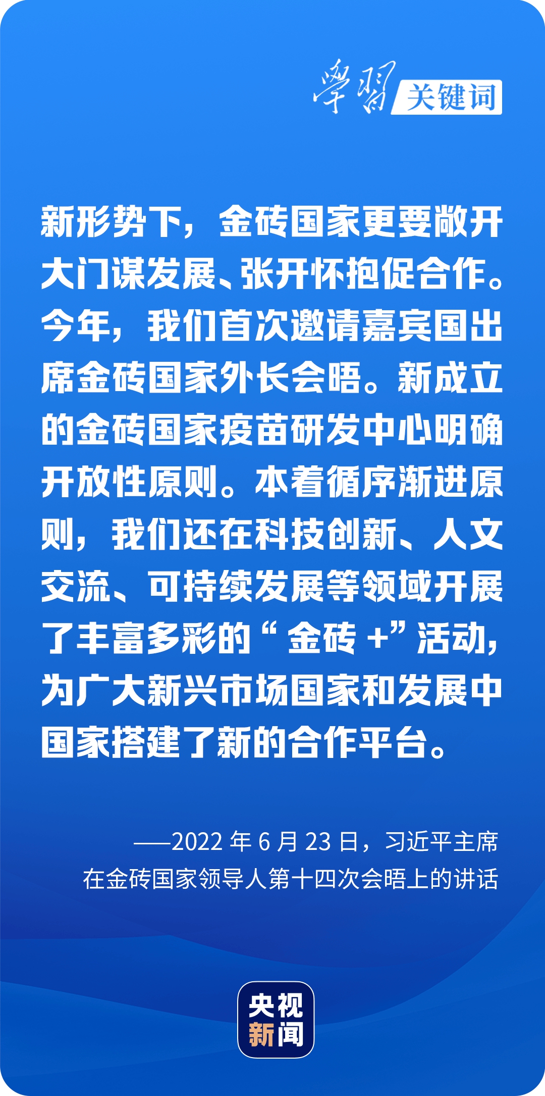 “讓金磚的朋友圈越來越大,伙伴網(wǎng)越來越廣!苯陙恚(xí)近平主席多次表達(dá)“金磚+”合作的初衷。