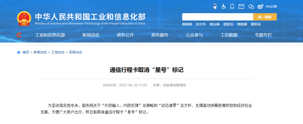 工信部:即日起取消通信行程卡“星號”標(biāo)記