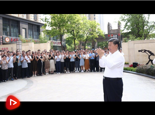 6月28日,中共中央總書記、國家主席、中央軍委主席習近平在湖北省武漢市考察。這是28日下午,習近平在東湖高新區(qū)左嶺街道智苑社區(qū)廣場同干部群眾親切交流。